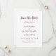 Élégantes cartes de rappel délicates en beau bordeaux et blanc sont classiques, formelles et intemporelles. Le design romantique sans bord vous permet de choisir facilement la forme du papier pour votre annonce de fiançailles. Deux fioritures décoratives contenant chacune un seul cœur enveloppent délicatement le nom de la mariée et du marié. Pour des résultats optimaux, allez à la ligne et mettez des majuscules comme dans l'exemple.