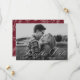 Annoncez vos nouveautés dans le style avec notre script de calligraphie blanche enregistrer les cartes de dates. L'élégant enregistrer les dates affiche votre photo horizontale fiançailles avec "Enregistrer la date" dans un script de calligraphie blanc. Personnalisez le devant de la photo enregistrez la date en ajoutant vos noms, date mariage et ville/état. La carte inverse pour afficher un motif de feuillage blanc avec un arrière - plan bordeaux ou la couleur de votre choix.