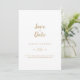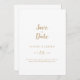 Cette simple calligraphie|mariage d'or sauf la carte de date est parfait pour un mariage élégant. Le design classique est orné d'or rustique et d'une typographie blanche avec une touche minimaliste moderne.