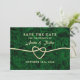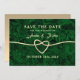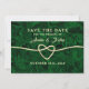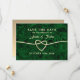 Simple, élégant, coeur de corde en feuille d'or en combinaison avec boho abstrait vert émeraude arrière - plan. Adorable, minimaliste calligraphie moderne Mariage Enregistrer La Date Invitation.