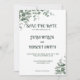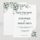 A beautiful "Save the Date" card in a simple elegant design decorated with Eucalyptus leaves.