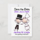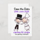 Save the Date Card with Cartoon Wedding Couple Lilac