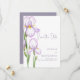 Save the Date Card for a Modern Wedding. Delicate irises in soft lilac shades are depicted against a pastel background, creating an atmosphere of sophistication and tranquility. The design is modern, airy, and perfect for a stylish, romantic wedding.