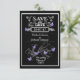 Wedding Save The Date cards which are a popular vintage chalkboard design with purple butterflies
