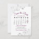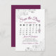Cette carte Save the Date présente une belle conception avec cassis violet ou magenta et écriture grise sur un arrière - plan blanc, et frileusement faux feuille argent gris dans les coins. Il y a un calendrier personnalisable où vous pouvez mettre un coeur autour de votre date de mariage. Il y a de la place pour le nom du couple, l'emplacement du mariage et le site Web. Une façon élégante et chic de faire savoir à vos amis et à votre famille de sauver la date pour votre jour spécial.