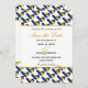 Invitation élégante SAVE THE DATE avec la carte de la BARBADE dans un motif de carrelage et une garniture dorée. Le message indique « Et les deux deviendront Un ». La conception peut être entièrement personnalisée avec votre propre message et pour vos propres célébrations spéciales, par exemple. anniversaires, jours d'indépendance, jours du patrimoine, réunions de famille, etc. Papeterie assortie disponible. Soyez fier de votre patrimoine lors de votre journée spéciale.