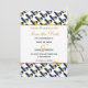 Élégante invitation SAVE THE DATE avec la carte de la BARBADE dans un motif de carrelage et une garniture dorée. Le message indique « Et les deux deviendront un ». La conception peut être entièrement personnalisée avec votre propre message et pour vos célébrations spéciales, par exemple les anniversaires, les jours de l'indépendance, les jours du patrimoine, les réunions de famille, etc. La papeterie assortie est disponible. Soyez fier de votre patrimoine le jour de votre mariage.