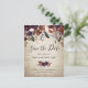 Cartes "Save the Date" Butterum & plum avec un fond en pierre de château rustique, plumes bohèmes, fleurs de rose et de pivoine, et un modèle de save the date moderne. ==================================================================================== Pour une personnalisation plus poussée, veuillez cliquer sur le bouton "Personnaliser" pour modifier ce modèle. Tous les styles de texte, couleurs et tailles peuvent être modifiés pour répondre à vos besoins. Vous trouverez d'autres articles de mariage assortis dans ma boutique www.zazzle.com/special_stationery, mais si vous ne trouvez pas ce que vous cherchez, veuillez me contacter.
