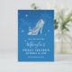 Vous cherchez des idées de fête d'anniversaire sur le thème de Cendrillon pour votre grand jour ? Créez vos propres faire-part de sauvegarde uniques et élégants à partir d'un magnifique modèle DIY facilement personnalisable. L'illustration originale du conte de fées par Raphaela Wilson représente une belle chaussure de verre avec un papillon en cristal, un carrosse en forme de citrouille, une horloge de minuit, des étincelles et des papillons en confettis. Alors que le thème de couleur de ces invitations de sauvegarde de modèle reflète le bleu royal et l'argent, vous pouvez modifier le design fantaisiste et choisir une autre couleur - même ajouter une touche florale simple en révélant un motif de rose aquarelle. Le texte qui dit : "Préparez-vous à danser toute la nuit jusqu'à ce que l'horloge sonne minuit" ainsi que tous les autres textes peuvent être modifiés pour s'adapter à l'occasion. Mariages de conte de fées, quinceañera / quince de Cendrillon, baby shower de princesse ou douche de mariée... vous avez la capacité créative de reformuler ces cartes de sauvegarde à votre guise. Si vous préférez créer des aimants de sauvegarde personnalisés ou des cartes postales économiques à la place, il est facile de transférer le joli design de papillon sur un modèle de papeterie différent. Préférez-vous une typographie