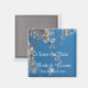 Save the date magnet, cherry blossom branches in blue sky. nature photography.