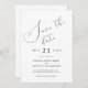 Élégant mariage chic et noir et blanc moderne Enregistrer la date. Magnifique mariage design sophistiqué enregistrer la date avec du texte noir sur blanc avec frappe Enregistrer la date script en-tête de typographie. Personnalisez avec votre enregistrer le texte des détails de la date. Le dos est blanc et solide. Tout le texte, les polices et les couleurs sont personnalisables et peuvent être ajoutés ou supprimés au fur et à mesure que vous choisissez. Nous vous invitation à visiter notre magasin Austen & Grace, pour voir la suite mariage complète, assortis produits et plus encore. Veuillez nous contacter si vous avez besoin d'aide.