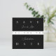 Annoncez votre histoire d'amour avec une sophistication intemporelle à travers notre Chic Black White Simple Typographie Wedding Enregistrer les cartes Date. Avec un design classique et élégant, ces cartes captent l'essence de la simplicité et du minimalisme chic, offrant un mélange parfait de charme traditionnel et de style contemporain. L'esthétique sombre de la palette noire et blanche renforce l'allure dramatique, créant une touche gothique qui résonne avec les goûts modernes. Embrassez le pouvoir de la typographie car chaque lettre est délicatement conçue, transformant votre sauvegarde en une oeuvre d'art qui reflète la pureté de votre amour et l'engagement d'une vie.