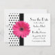 Classy, chic, et rétro poka noir et blanc point rose gerbera mariage fleur marguerite enregistrer la carte de date. Les pois noirs et blancs rétro sont jumelés à une fleur de marguerite rose-chaud brillant et gai dans ce mariage rétro enregistrer la conception de la date. Les couleurs de ce design sont roses chaudes, noir et blanc. C'est un mariage chic rose marguerite, pois blanc et noir motif sauf le faire-part de date. Bien que cette fleur de marguerite rose et les pois enregistrer la carte de date est actuellement customisé pour un mariage, il pourrait également être utilisé pour d'autres occasions spéciales. Vraiment, c'est à vous de décider. Tout ce que vous avez à faire est de changer le texte. REMARQUE : Il s'agit d'un design imprimé plat sans embellissement en relief ou en 3D. Le ruban et la fleur de marguerite rose sont imprimés sur l'invitation.