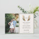 Oranges d'agrumes et crête de monogramme de verdure, mariage enregistrer la date carte photo. Crème d'ivoire et sauge rustique vert arrière - plan et les couleurs du cadre.