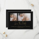 Classy 2 Photos Gold Black Wedding Enregistrer la date. Disponible numériquement et imprimé. Or classique et élégance noire. Remplacez simplement les deux exemples de photos par vos propres favoris. Save the Date est dans un script stylé et personnalise facilement le reste du texte. Ajoutez votre code QR à votre site Web mariage au dos de fait que cette option est pratique pour vos invités de voir tous les détails. Il suffit de modifier l'exemple d'URL avec votre propre et votre code QR sera généré automatiquement.