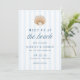 Announce your wedding with coastal style using this Coastal Blue Stripe Shell Beach Wedding Save the Date, featuring a watercolor shell at the top of the design. Soft blue vertical stripes create a light and airy background, while “Meet us at the beach” is displayed in elegant navy serif and script lettering for a polished and inviting focal point. Your names, wedding date, and location are arranged below in a clean, well-balanced layout that keeps the design easy to read. The back of the card features a vertical engagement photo with your wedding website displayed beneath, set against the coordinating striped background for a cohesive look. Ideal for beach weddings, destination weddings, and oceanfront venues, this save the date offers a timeless design with a relaxed seaside feel.