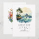 Capturez l'essence d'un mariage de rêve à Hawaii avec cette superbe carte de sauvegarde de date de destination. Avec une scène de plage tropicale à l'aquarelle sur le devant et des fleurs tropicales vibrantes avec un code QR au verso, ce design allie parfaitement élégance et praticité. Facilement personnalisable avec vos détails de mariage, cette carte donne le ton parfait pour votre célébration inoubliable sur l'île.