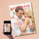 Une carte moderne et unique de sauvegarde de date de mariage conçue pour ressembler à une couverture de magazine. La carte présente une photo préférée du couple heureux avec ENREGISTREZ LA DATE comme titre du magazine dans un corail vibrant. Parfait pour une photo légère. Personnalisez avec vos noms, date de mariage, lieu et code QR pour votre site web.