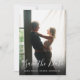 Cette simple carte de rendez-vous photo à l'écriture moderne présente votre photo spéciale superposée avec un rendez-vous à l'écriture au-dessus de vos noms, date et lieu en texte blanc.