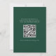 Annoncez vos nouveautés dans le style avec notre code QR élégant et moderne enregistrer la carte de date. La non-photo enregistrer la date comporte "Enregistrer la date" en caractères serif blancs et des polices de script avec un arrière - plan vert. Personnalisez le devant de la carte de date en ajoutant vos noms, votre date de mariage, votre emplacement de mariage et d'autres détails mariages. Le minimum enregistrer la carte date revient à mettre en place votre code QR personnalisé avec le site Web mariage et le texte personnalisé. Parfait enregistrer la date pour les mariages formels et décontractés modernes!
