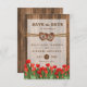 Save The Date Coeurs en bois monogramme avec tulipes rouges