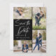 Prenez vos 5 meilleures images de votre séance photo fiançailles avec 4 pour l'avant et une pour l'arrière. Il dispose d'un design de lettrage manuel qui dit Enregistrer la date.