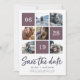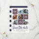 Annoncez vos nouveautés avec ces chic enregistrer les cartes de dattes dans une palette de couleurs spectaculaires de vin de prune luxuriante et de bleu nuit profond. Les cartes comportent six de vos photos de carré préférées et votre date de mariage dans une mise en page quadrillée, avec "Enregistrer la date" sous une nouvelle police de caractères manuscrite décontractée. Personnalisez avec vos noms, l'emplacement mariage et le site Web ou d'autres informations en bleu nuit riche. Cartes inversées à bandes horizontales larges.