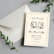 Célébrez votre histoire d'amour avec une invitation charmante et fantaisiste de Colombe Doodle Save the Date ! Avec une paire délicate de colombes dessinées à la main et une typographie ludique et manuscrite, ce design donne le ton parfait pour un mariage romantique et fantaisiste. Personnalisez avec vos détails de mariage et envoyez une annonce unique qui se démarquera certainement.