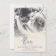 Couple mariage embrassant en carte Mariage monochrome sur lequel l'image, l'occasion, les noms, l'emplacement et la date peuvent être customisés dans le modèle.