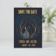 Cette superbe carte de Save the Date présente une illustration d'un couple se tenant la main dans les bois la nuit. Au-dessus d'eux, il est écrit "Save the Date" et en dessous se trouvent les noms et la date de l'événement. Le texte est modifiable, alors n'hésitez pas à modifier les détails ainsi que le style, la couleur et la taille de la police. La couleur au dos de la carte peut également être modifiée.