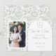 Sage Green Monogram Crest Wedding Save The Date : poitrine en monogramme d'art Vintage avec élégante typographie verte à la sauge. Dispose d'un motif floral de chinoiserie sur l'envers pour une sophistication intemporelle. Police de script élégante pour un style formel et classique. Ajoutez votre propre photo (verticale) pour tenir dans le cadre blanc. Créez votre propre crête mariage avec les initiales de mariée et de mariée. Cette conception est faite uniquement pour cette taille. Cependant, il est disponible en version transférable si vous préférez des dimensions différentes. Vous pouvez utiliser l'outil de conception pour l'ajuster au besoin.