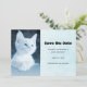 Enregistrez la carte datte avec une adorable photo d'un chaton blanc aux cheveux courts aux yeux bleu vif. En partant au loin. Des pattes croisées à la mode chatte typique.