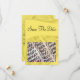This Elegant "Save The Date" announcement with matching items is designed with a broken yellow spiral digital art background and a complementary colour wavy banner across the top front. The design can serve for any occasion when you fill in the template fields with your details, remove unwanted information and/or click the orange Customize it! button to select a font style, size and colour you prefer on the front and back. On the front, replace the template photo with your photo and it's done.