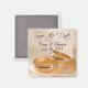Save the Date Magnets, Script with gold wedding bands rings design. Pretty and elegant design with fancy writing, and your personalized details. Perfect for a gold and white themed wedding theme.