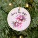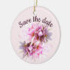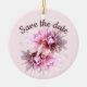Beautiful save the date custom text and background colour ornament with lovely pink flowers.