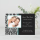 Annoncez votre futur mariage avec nos cartes d'annonce Save The Date avec un magnifique motif damassé noir & blanc avec un cadre photo découpé bleu turquoise. Ajoutez simplement vos informations de mariage et votre photo et vous êtes tous prêts à partir ! Correspondance des timbres-poste et des scellés d'enveloppe disponibles dans notre boutique