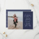 Avec une date en gras dans une couleur bleu marine et beaucoup d'espace pour le texte personnalisé avec tous les détails de votre mariage, cela enregistrer la carte de date a également un endroit pour une seule photo fiançailles vertical. Le dos est une couleur bleu marine coordonnée avec des rayures.