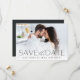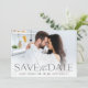 Annoncez la date de votre mariage dans un style inoubliable avec ces cartes de sauvegarde de date élégantes et modernes, comportant une photo horizontale ou en paysage à fond perdu avec "save the date" superposé en lettrage noir le long du bas. Vos noms, date de mariage et lieu de mariage apparaissent en dessous en lettrage moderne. Personnalisez le dos avec des détails supplémentaires, tels que votre site web de mariage.