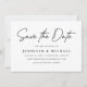 Enregistrez simplement la carte de date avec "Enregistrer la date" dans un script manuscrit noir avec un arrière - plan blanc. Personnalisez le moderne enregistrer la carte de date en ajoutant vos noms, date mariage, emplacement du mariage, site Web mariage, etc. Le minimaliste enregistrer la carte de date inverse pour afficher votre photo de fiançailles horizontal préférée.