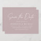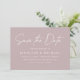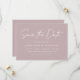 Enregistrez simplement la carte de date avec "Save the Date" dans un script blanc manuscrit avec un arrière - plan pourpre poussiéreux. Personnalisez le moderne enregistrer la carte de date en ajoutant vos noms, date mariage, emplacement du mariage, site Web mariage, etc. Le minimaliste enregistrer la carte de date inverse pour afficher un arrière - plan violet solide poussiéreux avec de l'espace pour du texte et des photos supplémentaires.