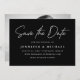 Enregistrez simplement la carte de date avec "Enregistrer la date" dans un script manuscrit blanc avec un arrière - plan noir. Personnalisez le moderne enregistrer la carte de date en ajoutant vos noms, date mariage, emplacement du mariage, site Web mariage, etc. Le minimaliste enregistrer la carte de date inverse pour afficher votre photo de fiançailles horizontal préférée.