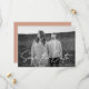 Enregistrez simplement la carte de date avec votre photo horizontale de fiançailles avec "Enregistrer la date" dans une superposition manuscrite blanche. Personnalisez le moderne enregistrer la carte de date en ajoutant vos noms, date mariage et emplacement du mariage. La photo enregistrer la date inverse pour afficher votre site Web mariage et d'autres détails en lettres blanches avec un arrière - plan en terre cuite.