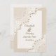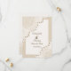 Elégante dentelle blanche avec mariage perles Enregistrer le faire-part Date avec dentelle blanche sur le beige de sable qui couvre deux coins d'un rectangle blanc avec bordure beige. Texte en marron. Notez que la dentelle est "imprimée sur" et non un tissu réel. Ce design élégant, chic et romantique et chic fait partie d'un ensemble mariage et est parfait pour un mariage chic printemps, été ou automne/automne avec une palette de couleurs neutres.