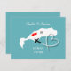 Une invitation save the date amusante pour les couples se mariant à Kos, avec une silhouette blanche de la carte de Kos sur fond sarcelle avec de doux cœurs d'amour rouges et très facile à personnaliser avec vos noms et message personnels