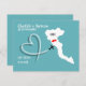 Un faire-part de mariage amusant pour les couples qui se marient sur l'île grecque de Corfou avec une carte en silhouette blanche sur fond sarcelle avec de doux cœurs d'amour rouges et si facile à personnaliser avec vos noms et message personnels
