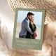 This lovely design features a save-the-date photo card, perfect for destination, weddings, with a simple, elegant, classy photo template style, a unique, green, palm leaves design perfect for beach weddings