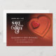 Deux cœurs battant comme un (Version 3) — Save the Date Annonce de mariage par Multiform présente deux cœurs rouges tridimensionnels gras sur un fond rouge radieux. Cette conception est idéale pour quiconque recherche un design romantique et accrocheur qui sort des sentiers battus et attire l'attention.