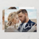 Cette carte de sauvegarde de date élégante et fantaisiste présente deux de vos photos personnelles préférées, avec une écriture manuscrite blanche tendance. Un look simple et moderne qui conviendra parfaitement à votre style !