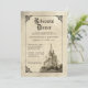 Réunissez vos proches et commencez votre "heureux toujours après" avec cette enchanteresse invitation à dîner de répétition de château de contes de fées. Avec un design d'inspiration vintage et une belle illustration d'un château majestueux, cette invitation donne un ton magique et romantique à votre fête pré-mariage. C'est le moyen idéal pour les invitations amis et la famille à un beau dîner et leur faire connaître tous les détails importants avant le grand jour.