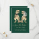 Rendez votre mariage inoubliable avec cette carte fantaisiste de dinosaures "Save the Date" avec une mariée et un marié T-Rex ! Parfait pour les couples amateurs de plaisir, ce design unique présente de charmantes illustrations d'aquarelle d'une mariée T-Rex et d'un marié sur un arrière - plan vert foncé jumelé à un script de typographie moderne et élégant. Personnalisez facilement avec vos noms et votre date de mariage pour créer une première impression mémorable pour votre grand jour. Ce "Save the Date" original et original est idéal pour les amateurs de dinosaures, les mariages à thème ou les couples qui souhaitent ajouter une touche ludique à leur papeterie mariage. Oeuvre originale de l'artiste Catherine Sweetman.